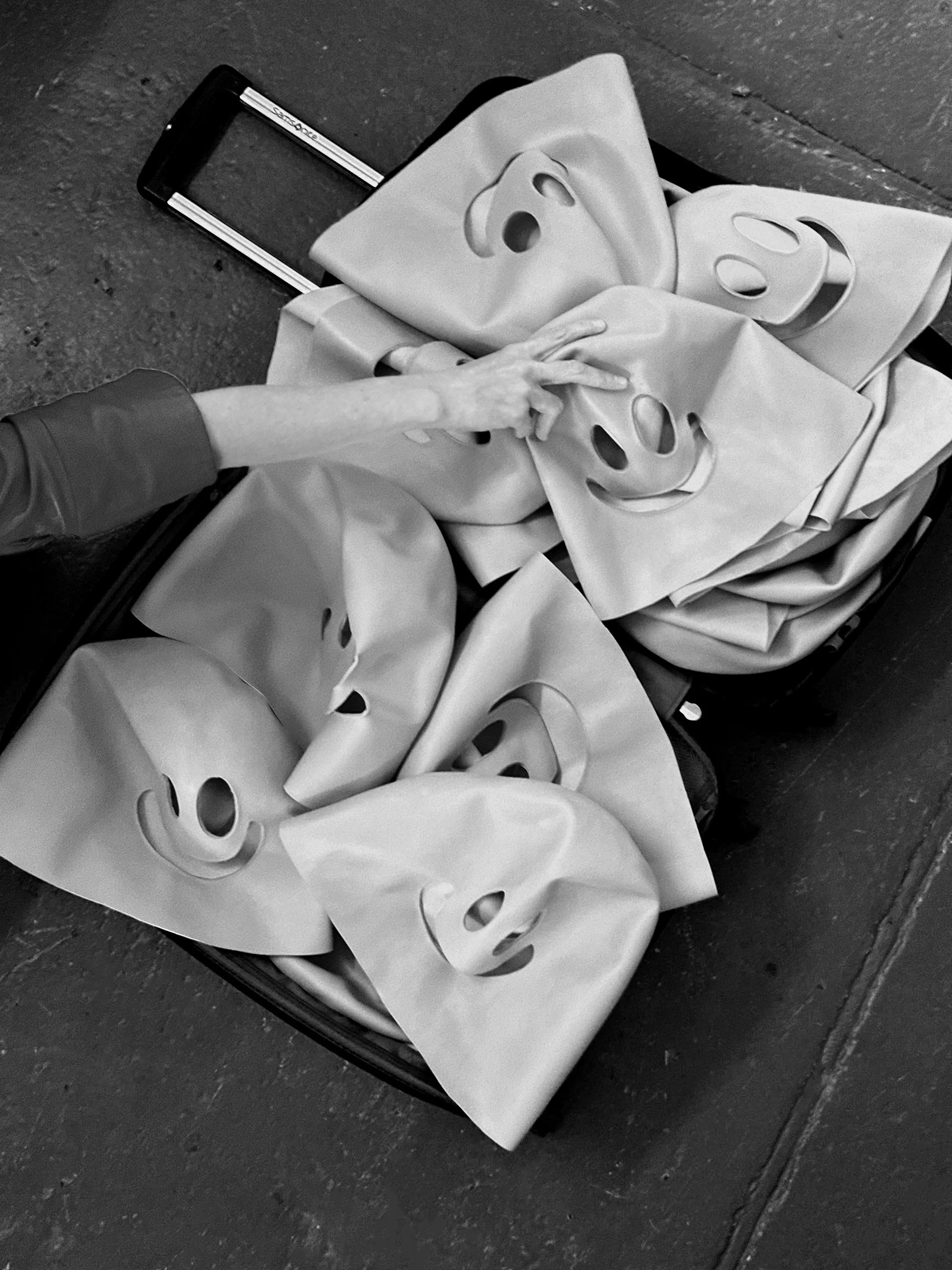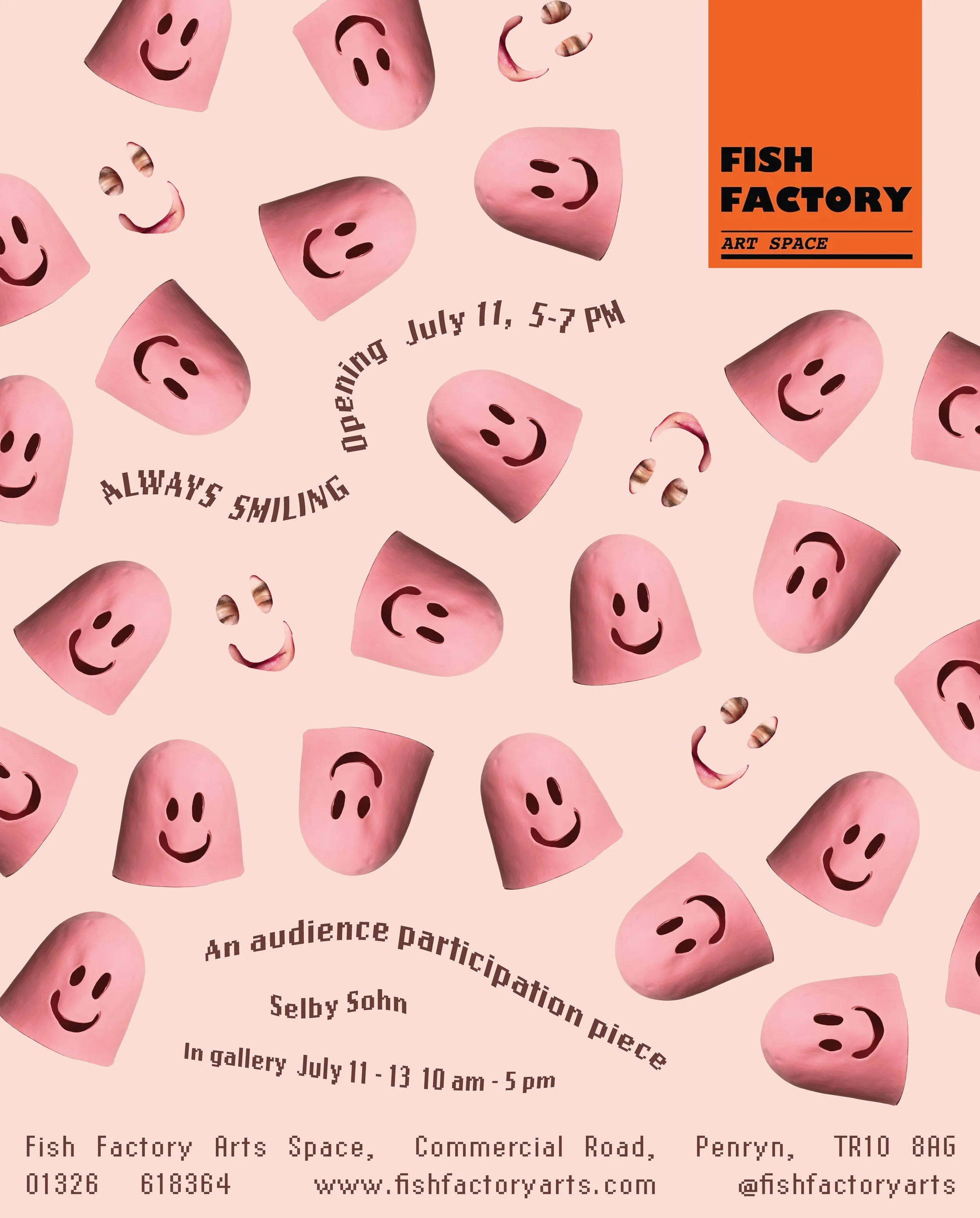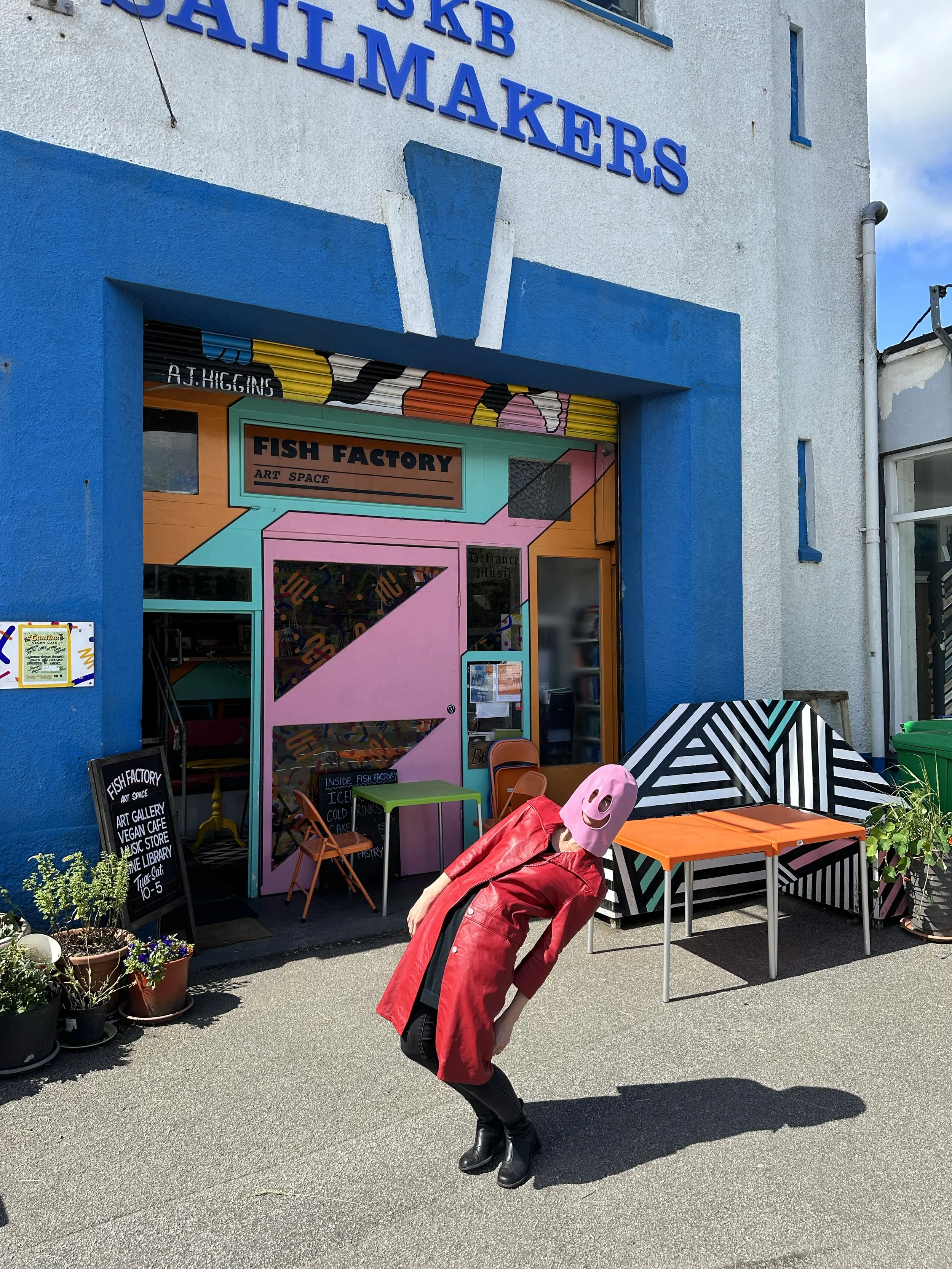 I went to Penryn, Cornwall, England with a suitcase full of 60 masks, Always Smiling at Fish Factory Arts Space 7.11.23